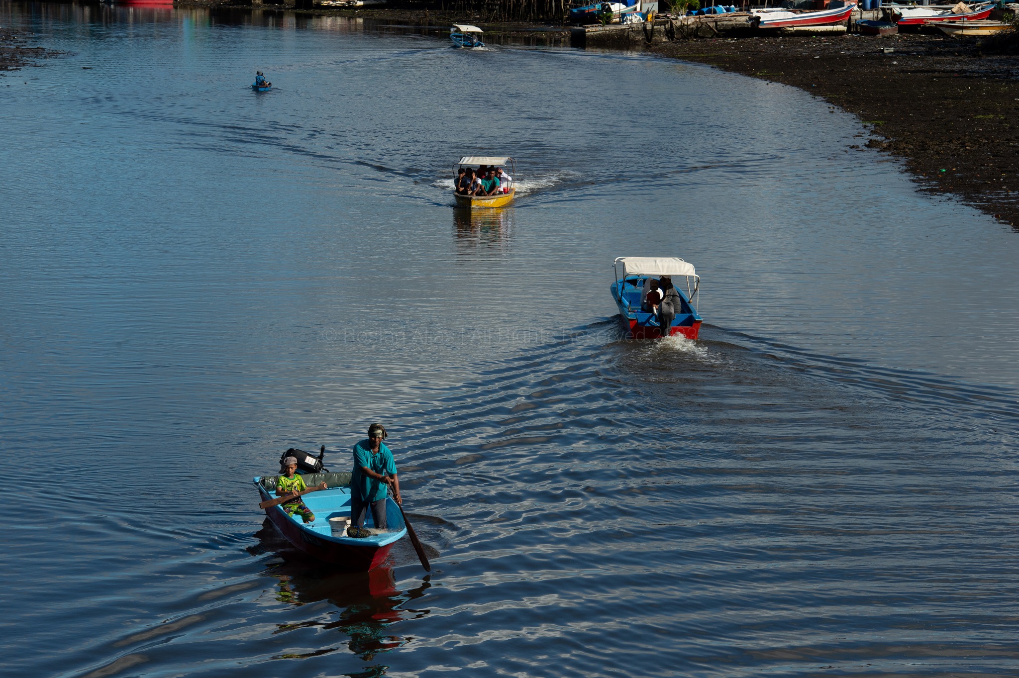 This evocative image captures the hard work and dedication of fishermen as they venture into the ocean in pursuit of their daily catch. Clad in weathered gear, they skillfully maneuver their boats through the waves, nets cast wide in hopes of a bountiful haul. The morning light glimmers on the water, illuminating the scene and highlighting the fishermen's focused expressions as they work in harmony with the sea.